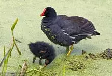 黑水鸡:是鹤形目、秧鸡科的鸟类,共有12个亚种。中型涉禽,体长24-35厘米。嘴长度适中,鼻孔狭长;头具额甲,后缘圆钝;嘴和额甲色彩鲜艳。翅圆形,第2枚初级飞羽最长,或第2枚和第3枚初级飞羽等长,…全部>>
