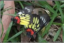 报喜斑粉蝶是粉蝶科斑粉蝶属的一种动物,又名红肩粉蝶、藤粉蝶等。幼虫群集性很强,从同一卵块孵化出的幼虫,幼龄期全部群集在一起取食,高龄幼虫常分散成小群。幼虫群集危害叶片,造成秃枝,严重者可将树吃成光杆,…全部>>