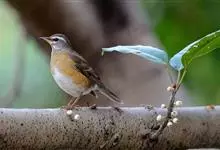 白眉鸫,是脊索动物门鸟纲雀形目鸫科鸫属中等体型的灰褐色鸫类。雄鸟头、颈、顺部至上颈灰色,具白色眉纹和下眼圈,眼先深色,上背至尾上覆羽橄榄褐色,上胸和两胁栗褐色,下胸、腹部和尾下覆羽白色,…全部>>