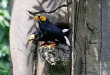 金冠树八哥为椋鸟科树八哥属的鸟类。体长约23厘米,闪辉黑色。特征为具翼斑及颏黄色,脸颊裸露皮肤粉黄色。分布于印度、缅甸、泰国以及中国大陆的云南、广东等地。…全部>>