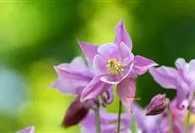 耧斗菜,毛茛科耧斗菜属多年生草本。根肥大,圆柱形;基生叶少数,二回三出复叶;叶片楔状倒卵形;叶柄疏被柔毛或无毛;花瓣瓣片与萼片同色,直立,倒卵形;雄蕊花药长椭圆形,黄色;退化雄蕊白膜质,…全部>>