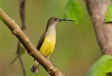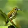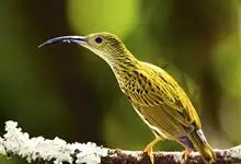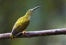 纹背捕蛛鸟:为太阳鸟科捕蛛鸟属的鸟类。是太阳鸟科中体型较大的一种,体重25-45克,体长160-210毫米。嘴粗长而尖且向下弯曲。上体橄榄黄色具黑色中央斑纹。下体淡黄白色满布黑色纵纹,尾具黑色次端斑。…全部>>