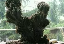 山影拳,是仙人掌科天轮柱属多年生草本多浆植物。茎肉质,深绿色;多分枝,呈不规则的岩石状堆叠排列;茎有纵棱或钝棱角,有短茸毛和刺。形态形成的主要原因是植株芽上的生长锥分生不规则,…全部>>