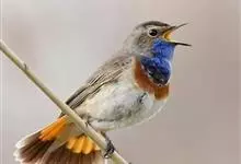 蓝点颏亦称“蓝喉歌鸲”,通称蓝靛颏儿。身体大小和麻雀相似,体长12-13厘米,体重17-18克。头部、上体主要为土褐色。眉纹白色。尾羽黑褐色,基部栗红色。颏部、喉部辉蓝色,下面有黑色横纹。下体白色。…全部>>