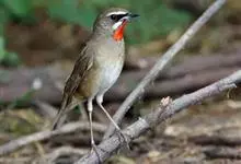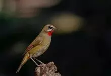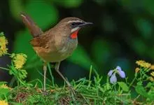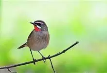 红点颏:是鸟纲、鹟科的鸣禽。又名西伯利亚歌鸲。体长14-17厘米,体重16-27克。雄鸟头部、上体主要为橄榄褐色。眉纹白色。颏部、喉部红色,周围有黑色狭纹。胸部灰色,腹部白色。雌鸟颏部、喉部不呈赤红色,…全部>>