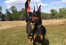 杜宾犬是一种十分凶猛的犬种,主要担当军、警工作,经过训练后,可成为搜索犬、狩猎犬和牧羊犬。杜宾犬性格活泼、警惕、坚定、机敏、勇敢而顺从。另一方面,杜宾犬胆大而坚决,好撕咬,具备一定的攻击性。…全部>>