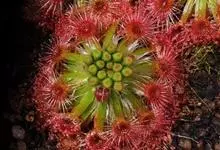 茅膏菜茅膏菜科茅膏菜属多年生草本植物,高32厘米。鳞茎状球茎紫色地上常直无毛,茎顶多分枝;基生叶密集成近一轮,叶片半月形;聚伞花序生于枝顶,白色或红色,种子椭圆形;花果期6-9月。茅膏菜为变种,…全部>>