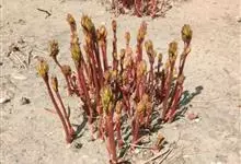 石蒜 Herb.):鳞茎近球形。秋季出叶,叶狭带状,顶端钝,深绿色,中间有粉绿色带;花茎高约30厘米;总苞片2枚,披针形;长约35厘米,宽约05厘米;伞形花序有花4-7朵;花鲜红色;花被裂片狭倒披针…全部>>