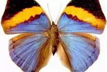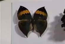 枯叶蛱蝶,又名木叶蝶、树叶蝶等,属于蛱蝶科。翅正面黑褐色,具深蓝色光泽,前翅顶角尖出,顶区有1枚小白点,中部有1条倾斜的橙色斑带,从前缘延伸至Cu室外缘,u室中部有1枚黑色圆斑,…全部>>
