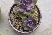 紫珍珠是景天科石莲花属的多年生肉质草本植物。植株中小型;叶片肉质,匙形,呈莲座状紧密排列;叶片粉紫色,叶缘呈粉白色,光照充足时颜色亮丽,不足时叶色会呈现深绿色或灰绿色,叶面光滑,被轻微白粉,…全部>>