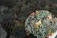 紫珍珠是景天科石莲花属的多年生肉质草本植物。植株中小型;叶片肉质,匙形,呈莲座状紧密排列;叶片粉紫色,叶缘呈粉白色,光照充足时颜色亮丽,不足时叶色会呈现深绿色或灰绿色,叶面光滑,被轻微白粉,…全部>>