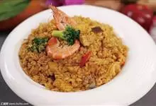 什锦炒饭是一道色香味俱全的名点,以江苏扬州的炒饭最知名。虾仁去泥肠洗净,加料酒、胡椒粉、淀粉上浆。胡萝卜洗净,切小片。蘑菇洗净、切块。将虾仁、豌豆粒、蘑菇倒入沸水锅中,焯烫至断生,捞出沥水。…全部>>