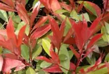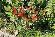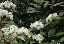 石楠 Kalkman),是蔷薇科石楠属的常绿乔木,高5~12米,株型紧凑,树冠圆球形。树枝为褐灰色;鳞片为褐色,没有毛;叶片革质,长椭圆至侧卵状椭圆形,有锯齿,新叶红色光亮。复伞房花序,白色小花,…全部>>