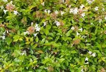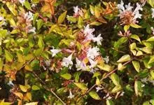 大花六道木,忍冬科六道木属半常绿矮生灌木。其幼枝为红褐色,有短柔毛;叶片倒卵形为墨绿色,有光泽;花粉钟形为白色;圆锥花序,开花繁茂;花期长,5~11月持续开花。…全部>>