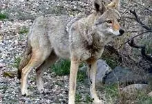 郊狼是食肉目犬科哺乳动物,也叫草原狼、北美小狼,与狼是近亲。它们的吻鼻部细长,耳朵大,腿细长,尾毛呈刷状;其体色为暗褐灰色,腹部为白色,背部绒毛为铜色,并在背部中央形成黑色条纹。…全部>>