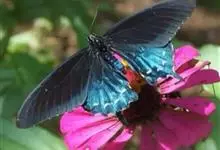 曙凤蝶是凤蝶科、曙凤蝶属蝴蝶。体背黑色,头、颈、胸侧及腹侧具红色鳞毛。雌、雄异型。雄蝶翅黑绒色,后翅的臀缘褶很大,反卷且具灰白色体毛的性标。雌蝶前翅大部及后翅色淡,…全部>>