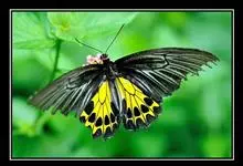 金裳凤蝶是凤蝶科、裳凤蝶属的动物。金裳凤蝶身体呈黑色,头、颈和胸侧有红毛,腹部有黑黄两色相间条纹,雄蝶前翅黑色,具黑天鹅绒光泽,各脉两侧灰白色,后翅金黄色,各室外缘有等腰三角形黑斑1枚,斑内侧有晕,…全部>>