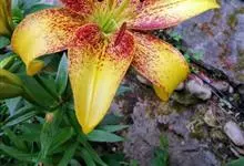 卷丹是百合科百合属植物。鳞茎近宽球形,鳞片宽卵形,呈白色;茎带紫色条纹,具白色绵毛;叶散生,矩圆状披针形或披针形,两面近无毛,先端有白毛,边缘有乳头状突起,上部叶腋有珠芽;花下垂,花被片披针形,…全部>>