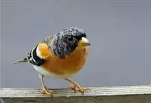 燕雀属小型鸟类,体长14-17厘米。嘴粗壮而尖,呈圆锥状。雄鸟从头至背辉黑色,背具黄褐色羽缘。腰白色,颏、喉、胸橙黄色,腹至尾下覆羽白色,两胁淡棕色而具黑色斑点。两翅和尾黑色,翅上具白斑。…全部>>