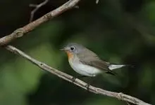 橙胸姬鹟:体长12-16厘米,是一种体型略小的林栖型鹟。尾黑而基部白,上体橄榄褐色,额具一白色横带,两端向上延伸至眼上形成眉斑。翼橄榄色,下体灰。成年雄鸟额上有狭窄白色并具小的深红色项纹,常不明显。…全部>>