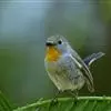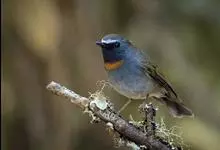 棕胸蓝姬鹟:属小型鸣禽,体长10-13厘米,体重6-10克,是一种体型很小的灰蓝及棕色鹟,雌雄羽色不同,雄鸟羽色艳丽,雌鸟羽色暗淡。雄鸟上体深蓝色,胸橙黄色,下腹灰白色。亚成鸟具褐色斑驳。…全部>>