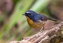 棕胸蓝姬鹟:属小型鸣禽,体长10-13厘米,体重6-10克,是一种体型很小的灰蓝及棕色鹟,雌雄羽色不同,雄鸟羽色艳丽,雌鸟羽色暗淡。雄鸟上体深蓝色,胸橙黄色,下腹灰白色。亚成鸟具褐色斑驳。…全部>>