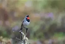 黑胸歌鸲是鹟科、歌鸲属小型鸟类,体长13-16厘米。上体石板灰褐色或橄榄褐色,头和颈侧黑色,眉纹和颧纹白色,在暗色的头部极为醒目。两翅和尾黑褐色,外侧尾羽具白色端斑。下体颏、喉雄鸟深红色,雌鸟白色。…全部>>