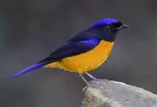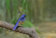 棕腹大仙鹟:体重24-28克,体长15-17厘米,是一种小型的色彩亮丽的鹟。雄鸟上体深蓝,下体棕色,脸黑,额、颈侧小块斑、翼角及腰部亮丽闪辉蓝色。与棕腹仙鹟易混淆,区别在色彩较暗。雌鸟灰褐,…全部>>