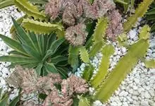 彩春峰是大戟科大戟属肉质植物,彩春峰的肉质茎依品种的不同有暗红色、乳白、淡黄及镶边、斑纹等复色。彩春峰的性状很不稳定,栽培中经常会发生色彩的变异,如暗紫红色肉质茎会长出白色黄色斑块等。…全部>>