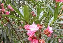夹竹桃,又名红花夹竹桃、欧洲夹竹桃,是夹竹桃科夹竹桃属的一种常绿直立大灌木,枝条灰绿色,含水液。叶披针形,3叶轮生。聚伞花序顶生,花冠粉红至深红色,花冠漏斗状,有特殊香味。蓇葖果,圆柱形。种子长圆形,…全部>>