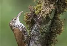 旋木雀是旋木雀科旋木雀属的一种动物。小型鸟类,体长12~15厘米,平均重10克。嘴长而下曲,上体棕褐色具白色纵纹,腰和尾上覆羽红棕色,尾黑褐色,外翈羽缘淡棕色,翅黑褐色,翅上覆羽羽端棕白色,…全部>>