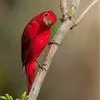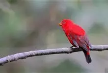 血雀雀科朱雀属鸟类,体重36-49克;体长155-182毫米。雄鸟除眼先、翼与尾为黑色外,通体为鲜红色;嘴鲜黄;雌鸟暗橄榄绿色,羽端较淡或带黄色;腰鲜黄;嘴较暗。虹膜褐色;嘴黄色;腿和脚褐色。…全部>>