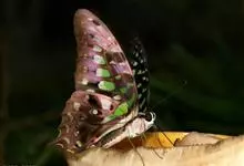 青带凤蝶Graphium sarpedon ,又名青凤蝶,是最普遍的中型凤蝶,飞行速度很快。青带凤蝶的翅膀中央有许多浅蓝色的斑点,很整齐地排列成一条直线。这些斑点由上而下逐渐变大,就像一条青色的带子。全部>>