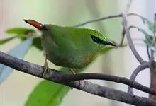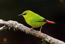 火尾绿鹛是莺科、绿鹛属小型鸟类,体长11-14厘米。上体绿色,头顶至枕具黑色鳞状斑,眼先和眼后黑色,眉纹黄绿色。两翅黑色具黄色和红色翅斑及白色端斑,极为醒目。中央一对尾羽绿色,外侧尾羽鲜红色。…全部>>