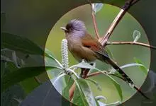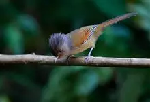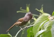 黑喉缝叶莺:体长11.5厘米,是一种小型的顶冠棕色、腹部白色的莺。尾甚长而常上翘,臀黄色,具特征性的偏黑色喉,上体橄榄绿色,头侧灰色。雌鸟色暗,头少红色且喉少黑色。与长尾缝叶莺的区别在后顶冠亦为棕色,…全部>>