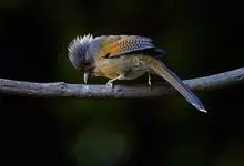 栗额斑翅鹛是噪眉科、斑翅鹛属中型鸟类,体长20-23厘米。头顶具浓密的羽冠,前额栗棕色,头顶灰褐色。上体棕褐色,两翅棕褐色具黑色横斑,翅基外缘有一黑斑,尾呈凸状,棕褐色具黑色横斑。下体棕褐色,…全部>>