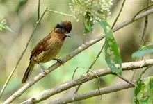 条纹噪鹛是画眉科、噪鹛属中型鸟类,体长28-32厘米。头具短的羽冠,上体栗褐色,飞羽外翻蓝灰色。下体棕栗色,腹以后转为褐白色。除飞羽和尾羽外,所有上、下体羽均具白色羽干纹。极为醒目。野外特征明显,…全部>>