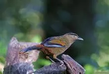 蓝翅噪鹛:噪鹛科、彩翼噪鹛属动物。中型鸟类,体长22-25厘米。上体棕橄榄褐色密被黑色鳞状斑,眼蓝白色,眼上有一长而宽阔的黑色眉纹,从眼先直到颈侧。下体棕褐色被黑色鳞状斑;尾上和尾上覆羽栗色,…全部>>
