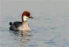 斑头秋沙鸭,是鸭科、斑头秋沙鸭属鸟类。雄鸟眼先和眼周黑色,成块斑状;头部其余部分全为白色。颈白色;背黑色,上背最前处的白羽具有黑端,相连而成两条半圆环狭带。下体白色,体侧羽毛具黑褐色波状细纹。…全部>>