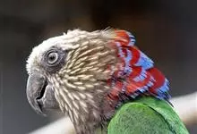 鹰头鹦鹉:鹰头鹦鹉体长35厘米,体重190-277克。额头和顶冠具柔和的白色,眼先深褐色,枕部和头部两侧有棕色羽毛,并具有柔软的白色条纹, 后颈有长长的暗红色羽毛并镶有蓝边,有2个亚种,是典型的攀禽,…全部>>