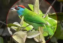 金喉拟啄木鸟,是须鴷科、拟啄木鸟属的鸟类。金喉拟啄木鸟为小型鸟类,体长19-24厘米。额深红色,头顶金黄色,后枕具一大块深红色斑,耳羽和头侧银灰色,上体草绿色,颏和上喉金黄色,下喉淡银灰色,…全部>>