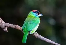 金喉拟啄木鸟,是须鴷科、拟啄木鸟属的鸟类。金喉拟啄木鸟为小型鸟类,体长19-24厘米。额深红色,头顶金黄色,后枕具一大块深红色斑,耳羽和头侧银灰色,上体草绿色,颏和上喉金黄色,下喉淡银灰色,…全部>>