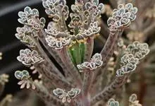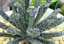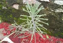 棒叶落地生根是景天科、落地生根属植物。茎直立、粉褐色。叶圆棒形,上表面有沟、粉色,有红褐斑。叶片交互对生,交叉排列成十字形。叶端锯齿上长有很小的幼株、落地后即可生根成活。原产非洲马达加斯加。…全部>>