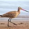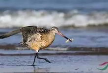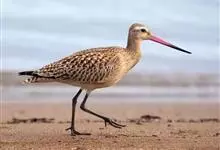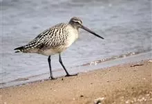 斑尾塍鹬,是鸻形目鹬科塍鹬属鸟类。其体形较大,体长约40厘米;喙较长,基部肉红色、尖端黑色而略向上翘;贯眼纹细而深,眉纹白色明显;雌鸟体型比雄鸟大,喙部也明显更长。非繁殖期雌雄鸟羽色相似,…全部>>
