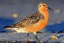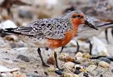 红腹滨鹬,是鹬科、滨鹬属的小型涉禽,体长23-25厘米,嘴较短而直、黑色,脚亦甚短、绿色。体较粗胖。夏季上体灰褐色具黑色中央纹,背具棕栗色和白色斑纹和羽缘,头侧和整个下体栗红色。冬季棕红色消失,…全部>>