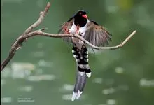 发冠卷尾是中型鸟类,体长28-35厘米。通体绒黑色缀蓝绿色金属光泽,额部具发丝状羽冠,外侧尾羽末端向上卷曲。栖息于海拔1500米以下的低山丘陵和山脚沟谷地带,多在常绿阔叶林、次生林或人工松林中活动。…全部>>