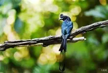 发冠卷尾是中型鸟类,体长28-35厘米。通体绒黑色缀蓝绿色金属光泽,额部具发丝状羽冠,外侧尾羽末端向上卷曲。栖息于海拔1500米以下的低山丘陵和山脚沟谷地带,多在常绿阔叶林、次生林或人工松林中活动。…全部>>