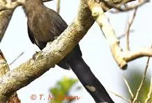 斑翅凤头鹃: 成鸟具羽冠,上体及头侧、翅、尾等黑色,具铁绿色亮辉,尾羽端部具白斑,两侧者形宽,中央者较狭;下体白色、淡灰白或略带棕黄色。虹膜褐至红褐色;嘴黑色;脚灰蓝黑色。…全部>>
