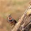蓝点颏亦称“蓝喉歌鸲”,通称蓝靛颏儿。身体大小和麻雀相似,体长12-13厘米,体重17-18克。头部、上体主要为土褐色。眉纹白色。尾羽黑褐色,基部栗红色。颏部、喉部辉蓝色,下面有黑色横纹。下体白色。…全部>>