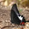 玉斑凤蝶Papilio helenus 别名白纹凤蝶,是凤蝶科凤蝶属美凤蝶亚属大型种类。雌雄同型;体翅皆黑色,后翅正面中室外有3个并列的白色斑,亚外缘有1列模糊的新月形红色斑,…全部>>